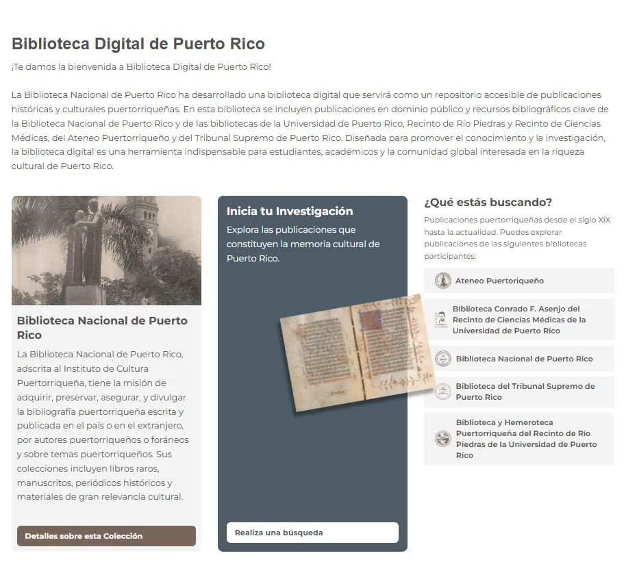 · En 2024 se crea la Biblioteca Digital de Puerto Rico para brindar acceso digital al patrimonio bibliográfico puertorriqueño de las principales colecciones puertorriqueñas del país.