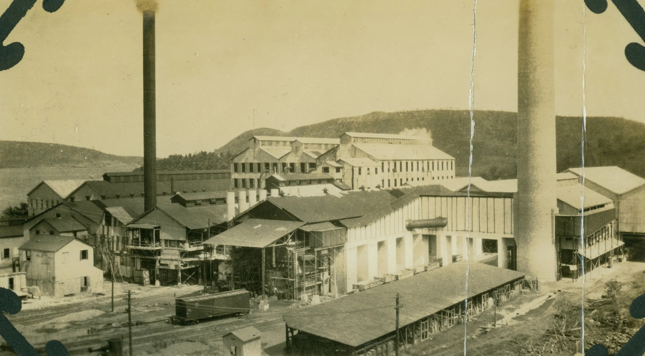 Esta vista de la Central Guánica exhibe los planes económicos que habían establecido para Puerto Rico los grandes intereses de las compañías azucareras estadounidenses (conocidas como los Sugar Barons) antes de la invasión de 1898. Ya para el 1900 la producción de azúcar inicia a gran escala en las centrales, gracias a los adelantos tecnológicos disponibles en aquel momento.
